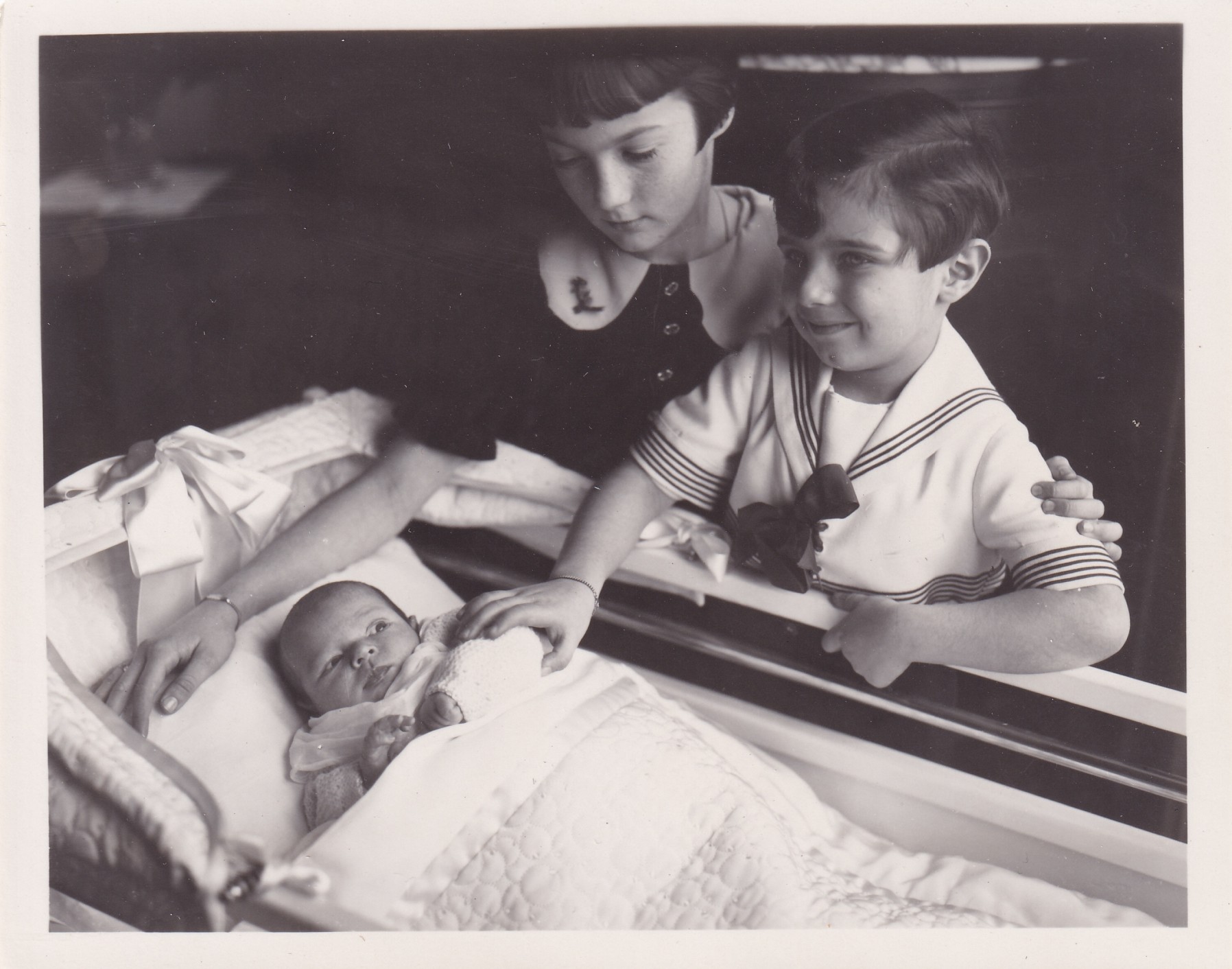 Deux enfants autour d’un bébé. Photographie trouvée dans une vente aux enchères.