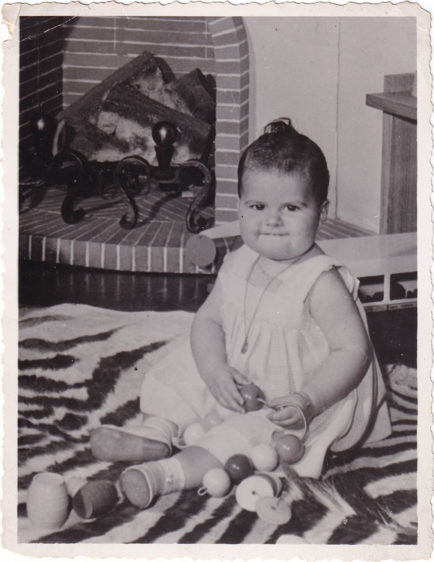 Enfant assis devant une cheminée. Photographie trouvée dans une vente aux enchères.