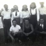 On peut voir que deux des demoiselles marques de la main leur propriété.Nous sommes en 1942, ils ont entre 16 et 18 ans. Tout le monde est endimanché sauf Henri MELLOT qui est en débardeur foncé.