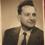 Le croisement des indices (vêtement, coiffure, bord festonné) situe l’épreuve entre 1946 et 1952, année médiane 1949. L’absence de marque laisse supposer un studio urbain commercial d’Europe occidentale, localisation possible mais non certaine. Il s’agit vraisemblablement d’un portrait professionnel ou photographique d’identité réalisé peu après la guerre. Pour affiner, inspecter le verso pour un tampon ou un code de laboratoire et consulter les annuaires locaux de photographes actifs vers 1945-1955.